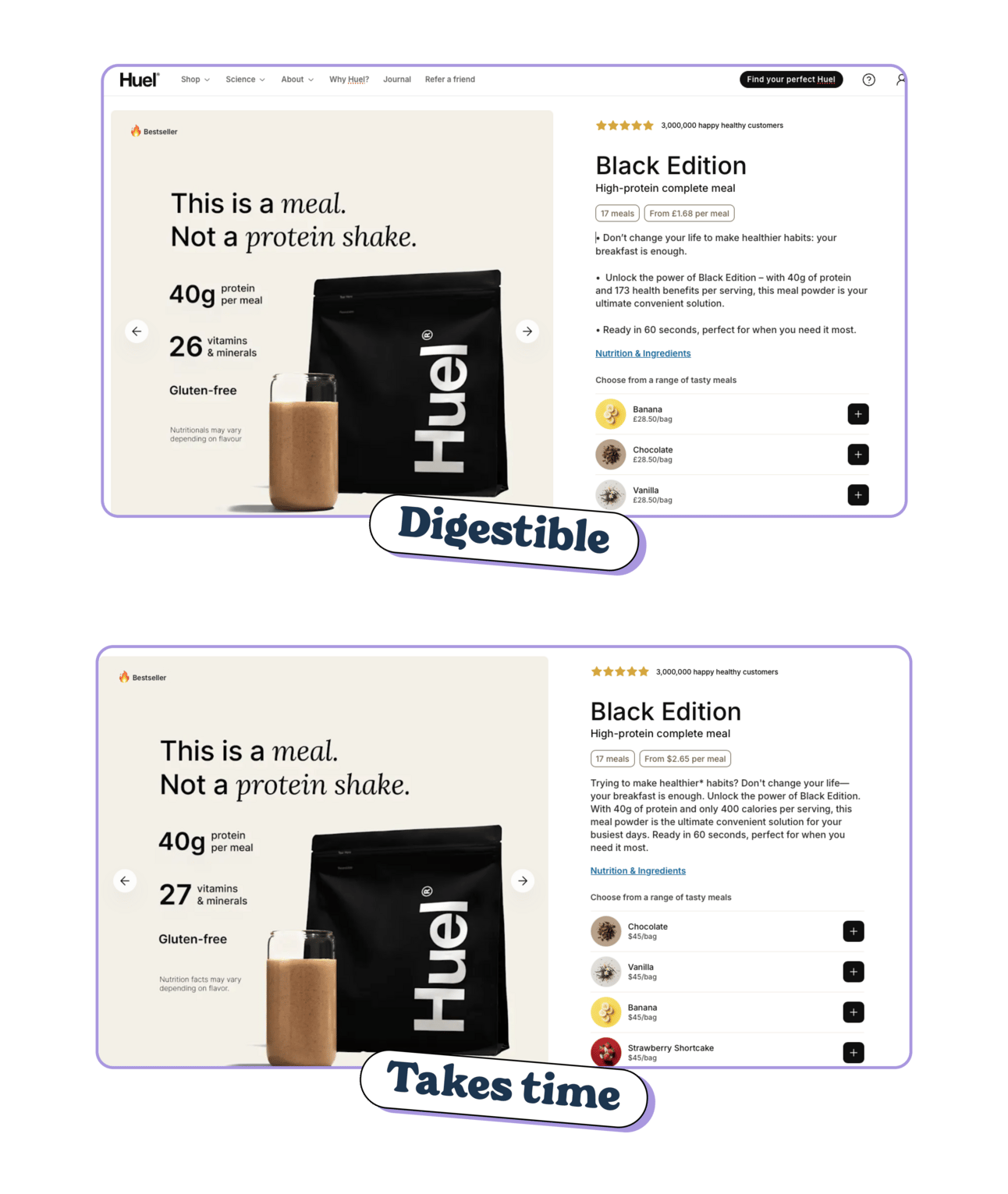 👆️ A 30-second tweak to Huel’s product pages makes their product descriptions more skimmable, more digestible and easier for the customer to spot the key messaging.